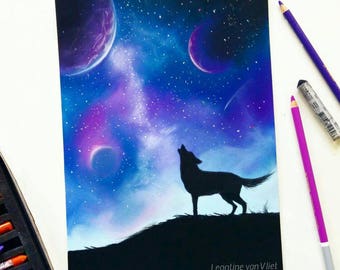 Galaxy wolf signed Art Print - galaxy wolf drawing colored
