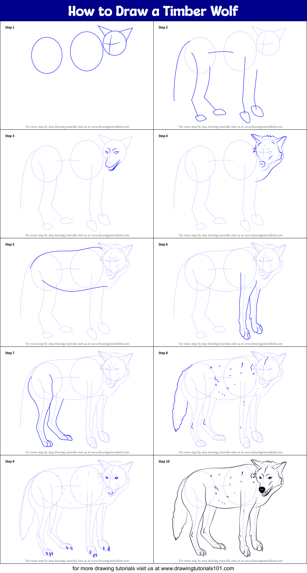 How to Draw a Timber Wolf printable step by step drawing ... - easy pencil wolf drawing step by step